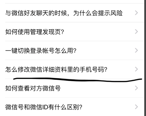 6、然后点击常见问题下的,如何修改微信详细资料里面的手机号码。