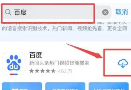 4、在顶部搜索框中输入想要下载的应用的名称,然后在搜索结果中,点击右侧的下载图标进行下载安装即可。