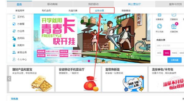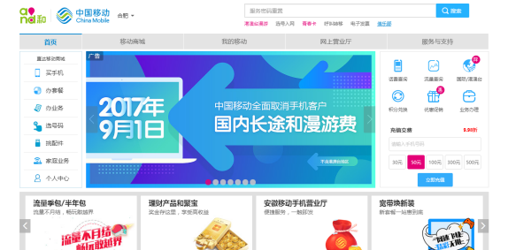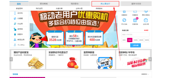 第一步:打开并登陆中国移动网上营业厅,如下图