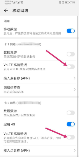 进入移动网络界面,把VoLTE高清通话关闭即可