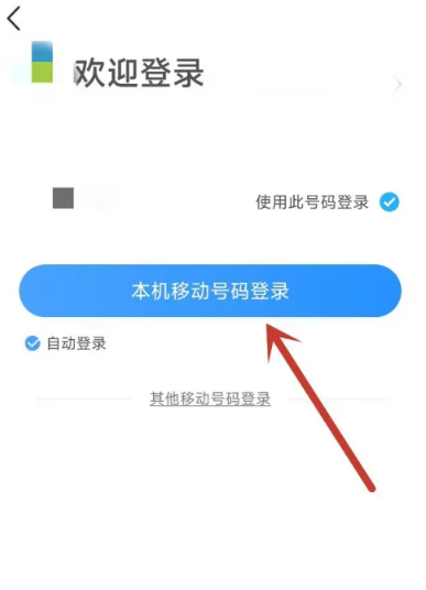 第三步,在登录页面,点击本机号码登录。(如下图所示)