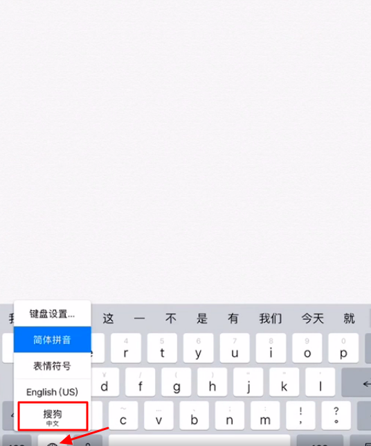第七步、然后打开一个应用输入字体测试一下,点击键盘下面的设置标志,选择搜狗输入法。