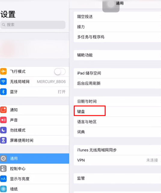 在通用列表里,请找到“键盘”一栏,点击进入。