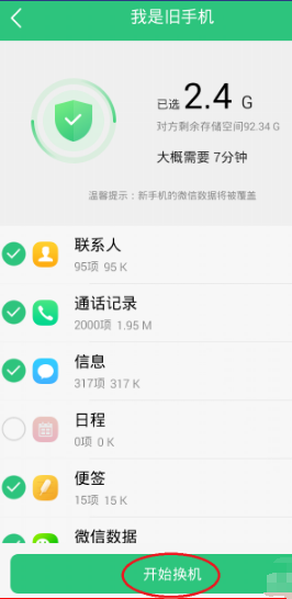 6、还是旧手机,选择“开始换机”。
