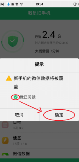 5、旧手机这会儿会出现一个对话框,如图依次点击。
