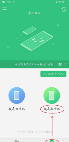 3、如图点新手机的“一键换机”,然后选择“我是新手机”。
