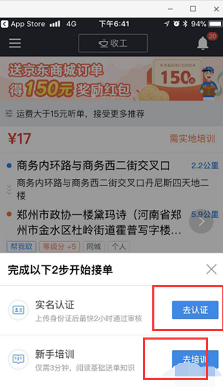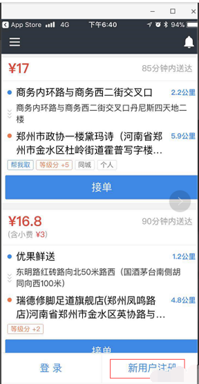 8、认证完成后,回到首页,找到合适的订单,点击“接单”即可。