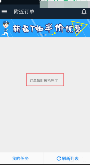1、点开达达平台抢单页面,如下所示,显示订单暂时被抢完。