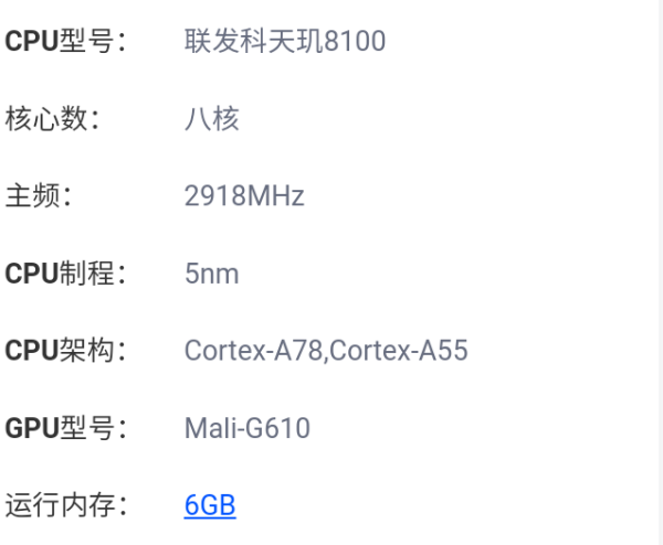 OPPO K9x搭载联发科天玑1200八核处理器,采用台积电6纳米工艺打造、八核CPU架构设计,拥有2颗Arm Cortex-A76大核,主频达到2.4吉赫兹,配合Mali-G57 GPU。