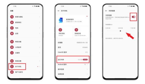 路径:打开「设置 > 关于手机> 运行内存 > 内存拓展 」,按需选择拓展大小,选好后重启手机。
