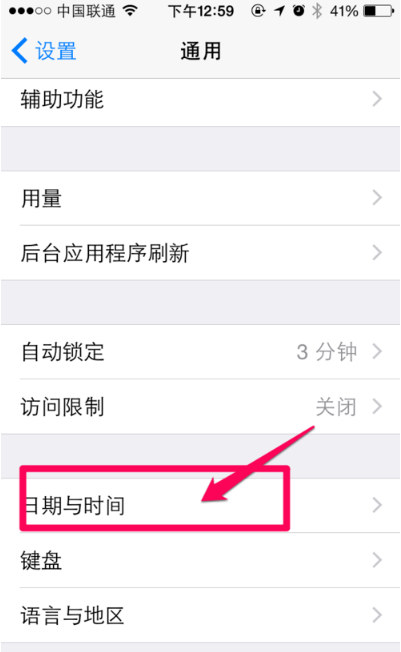 三、接着在通用界面打开“日期与时间”进入,如图。