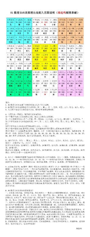 6、以八十一数组按每组数字成卦排列其路线正是九宫行走路线,以八十一组数,每数组成的卦(遇15、25、35、……95有外卦无内卦,51、52、53、……59有内卦无外卦)可根据卦词、爻词论吉凶而决不是以数论吉凶,而且数是自11—99共81组数,并不是1—81的数,决不能混淆是非。