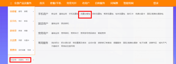1、打开中国电信网上营业厅,然后点击业务,然后点击流量加餐包