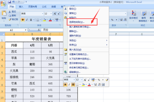 3、在空白处点击鼠标右键,选择“选择性粘贴”功能。