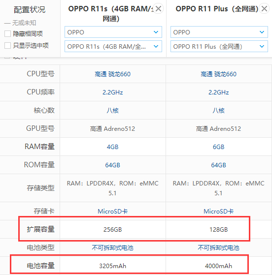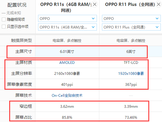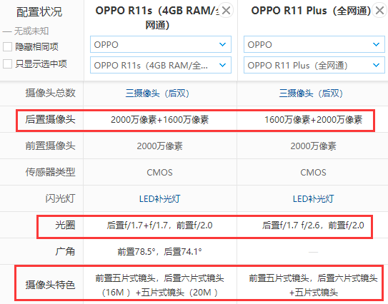 参考资料:中关村在线《OPPO R11s对比OPPO R11》