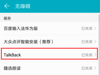 4、进入“无障碍”后,再点击“TalkBack ”进入。