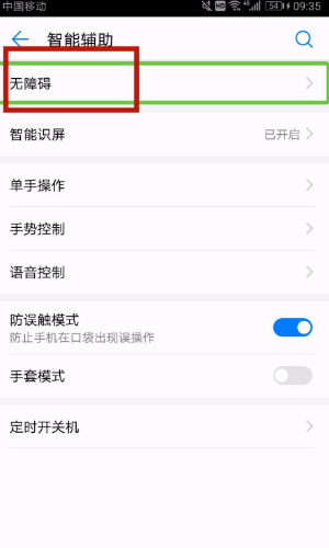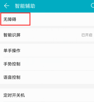 3、进入“智能辅助”后,再点击“无障碍”进入。