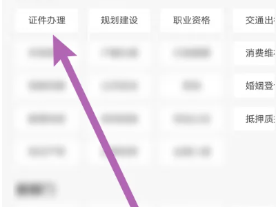点击办事指南,在新的界面点击证件办理进入。