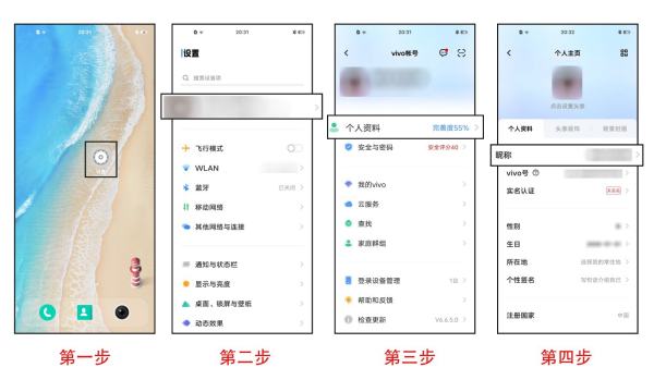 vivo账号昵称:进入设置--点击账号--个人资料--(个人资料)--点击昵称,即可修改;