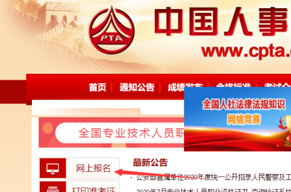 2、页面跳转以后进入到中国人事考试网的首页,点击网上报名进入。