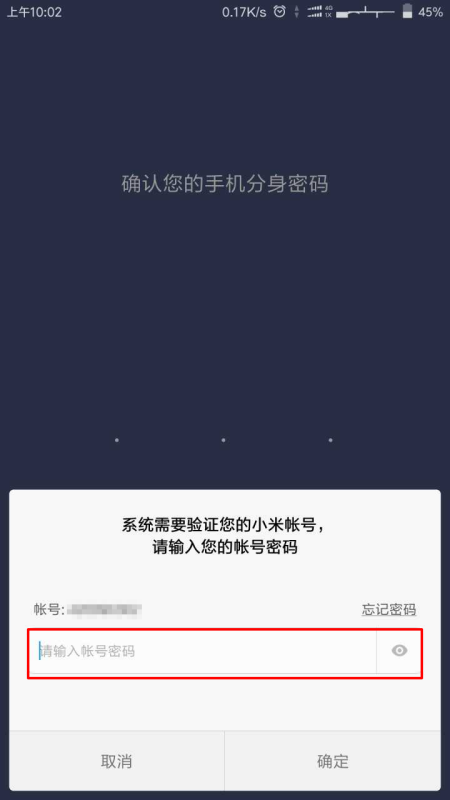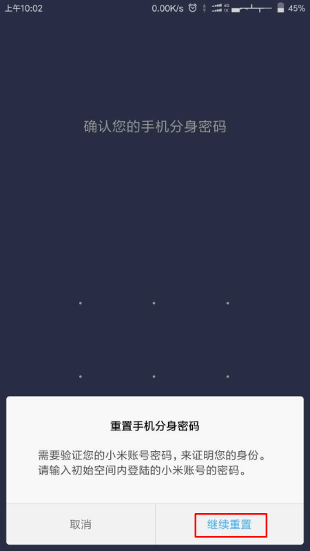 小米手机手机分身忘了密码后要重置