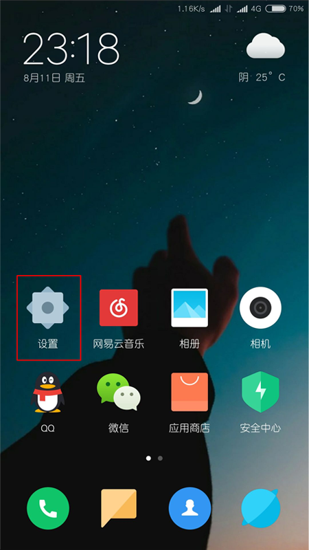 1、首先打开小米手机页面,选择设置。