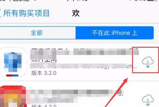 5、点击“不在此iPhone上”,然后就会看到那些已经删除过的软件,需要什么直接点击云下载图标进行下载即可。