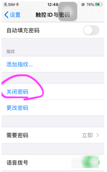 3、进入触控ID与密码中,找到关闭密码,点击关闭密码进行设置。