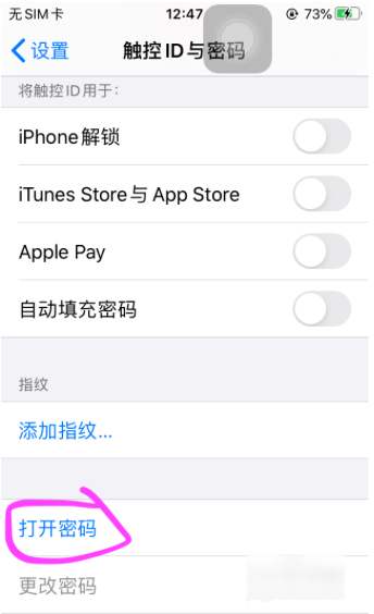 6、如果需要重新设置锁屏密码,点击打开密码,进行锁屏密码设置。