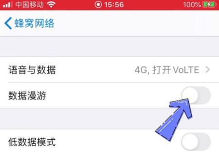 3、点击蜂窝网络里的蜂窝数据选项,进入后打开数据漫游后面的按钮。