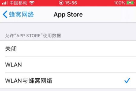 4、返回蜂窝移动网络界面后,在界面中找到Apple Store选项,查看一下Apple Store的蜂窝数据,是否是关闭的。