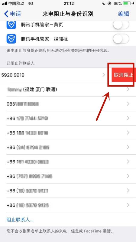 苹果手机上机伶软件给我一个号码给拦截掉了,怎么解除拦截呢?