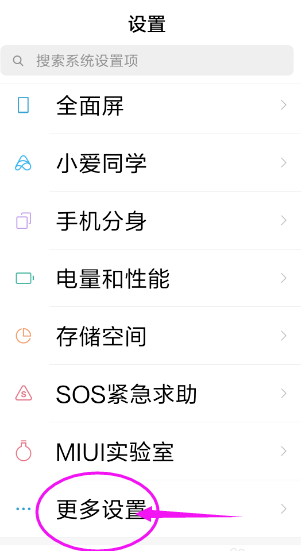 二、然后在手机的设置界面下拉菜单,选择“更多设置”选项,如图所示。