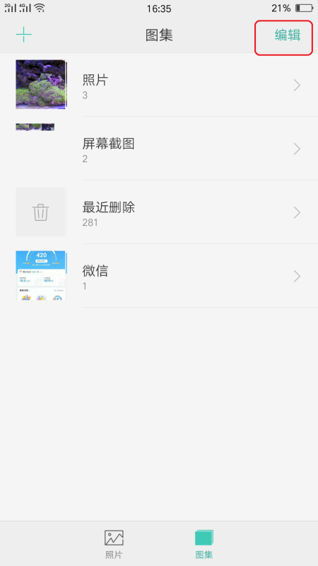 如果您想要让其中的个别相册出现在常用相册,可以点击编辑,然后选择需要设为常用相册的图集,设置一下就可以了。
