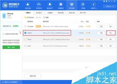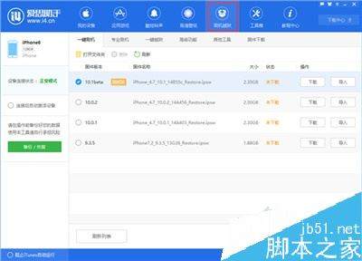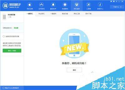 2、点击上方“刷机越狱”进入到“一键刷机”界面,连接成功会自动匹配固件。