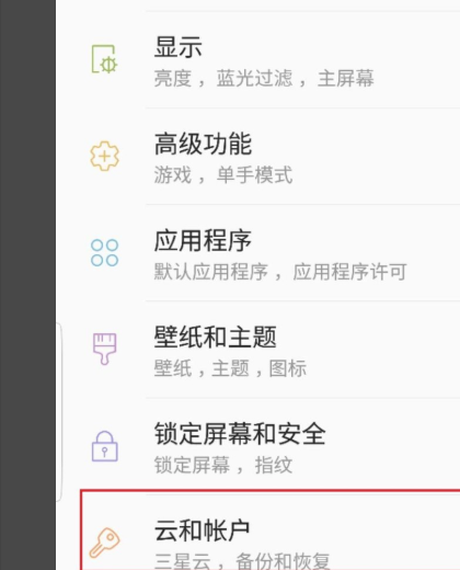 3、接着在里面选择三星账号选项,如下图。