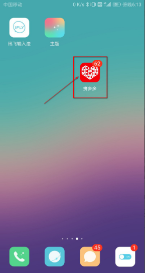 1、先在手机桌面上打开拼多多,如下图所示: