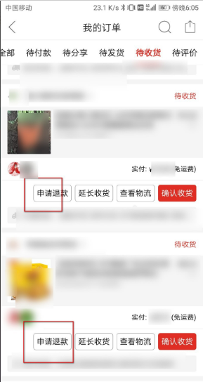 3、订单下有退款申请,如下图所示: