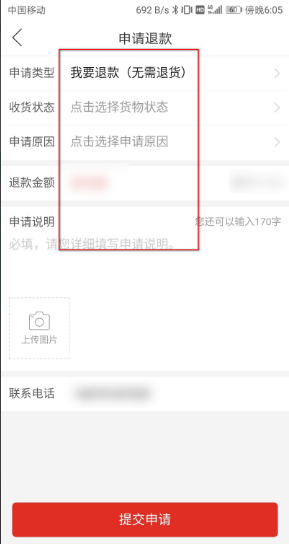 4、输入申请退款的原因,如下图所示:
