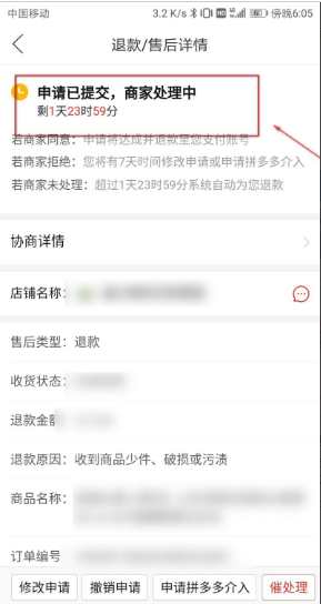 5、点击提交等待卖家处理,如下图所示: