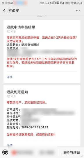 6、如果处理没有问题,我们将很快退款给我们的微信,如下图所示:
