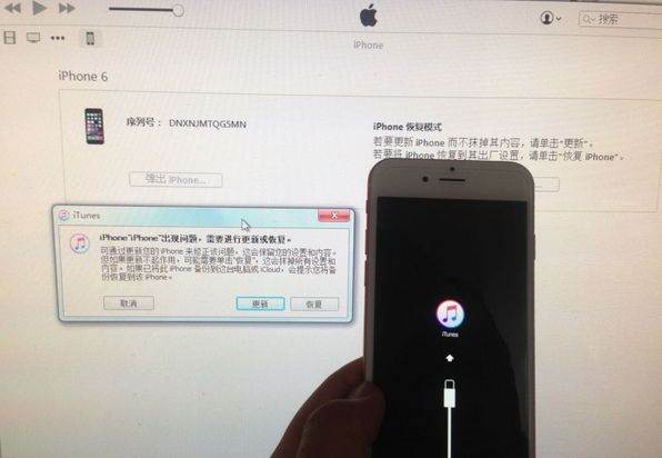 进入itunes以后,手机连接数据线,选择信任本电脑,同时按住手机开机键与home键不要放,直到手机按出itunes图标后松手;