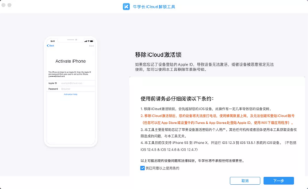 可使用牛学长iCloud解锁工具,可以完美绕过各种原因导致的iCloud激活锁,绕过iCloud激活锁后设备95%功能仍可用包括连接WiFi,更新下载APP、拍照摄影等。