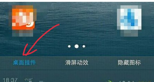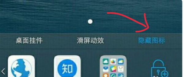 1.长按手机页面空白处,你会看下面出来一栏找到隐藏图标点开;