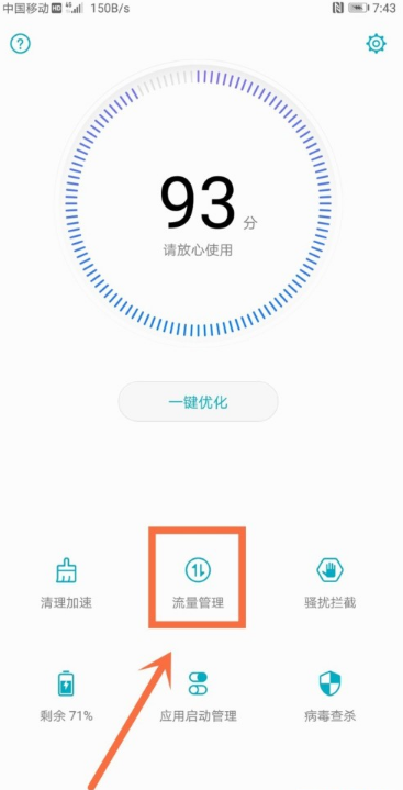 2、接下来就会进入到手机管家的界面,可以在界面中找到流量管理图标点击打开。