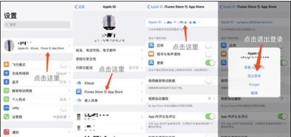 (2)点击最上面的账号,选择iTunesStore 与 App Store,再点击自己的Apple ID,最后点击退出登录。