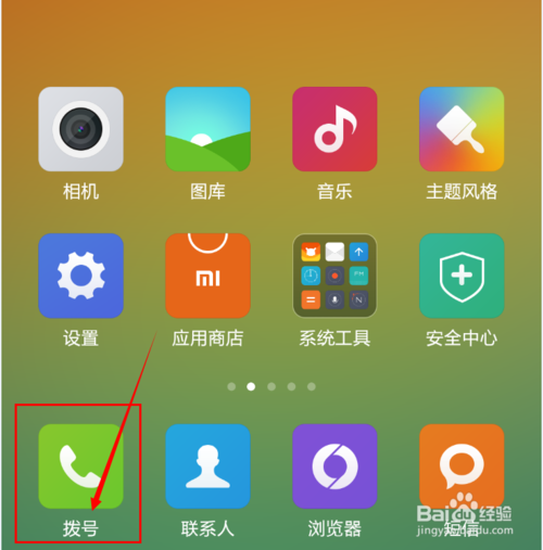 打开手机上划解锁,点击手机主页面的【拨号】图标,如图所示