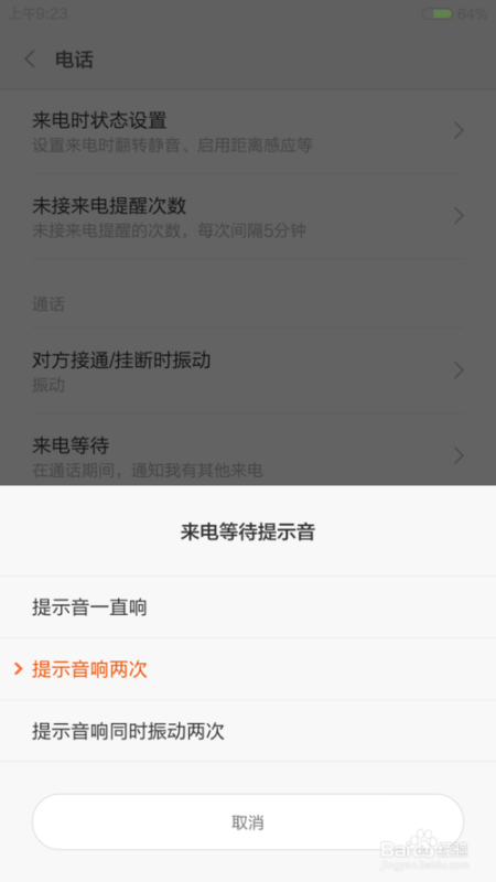 在通话期间,如果有其它来电那么来电提示音会一直响,我们只需在【来电提示音】中设置为提示音响两次即可。