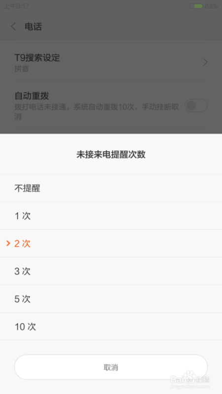 【未接来电提醒次数】默认的是不提醒,但平时有重要电话的小伙伴最好还是设置为2次,以便及时回复漏接的电话。