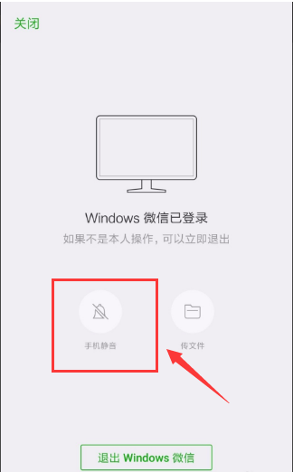 3、首先点击微信栏“widows微信已登录“。再点击“手机静音”即可让手机不提示。电脑下掉了之后手机又会重新提示。